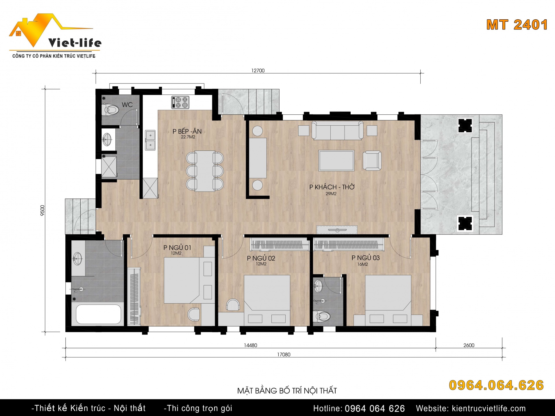 Công năng sử dụng: 1 phòng khách + thờ, 1 bếp +ăn, 3 phòng ngủ...