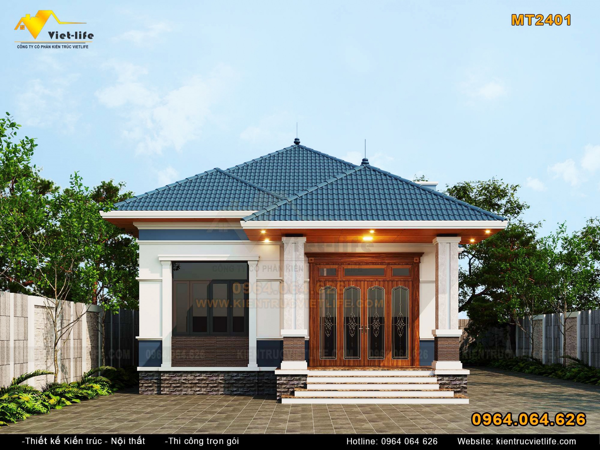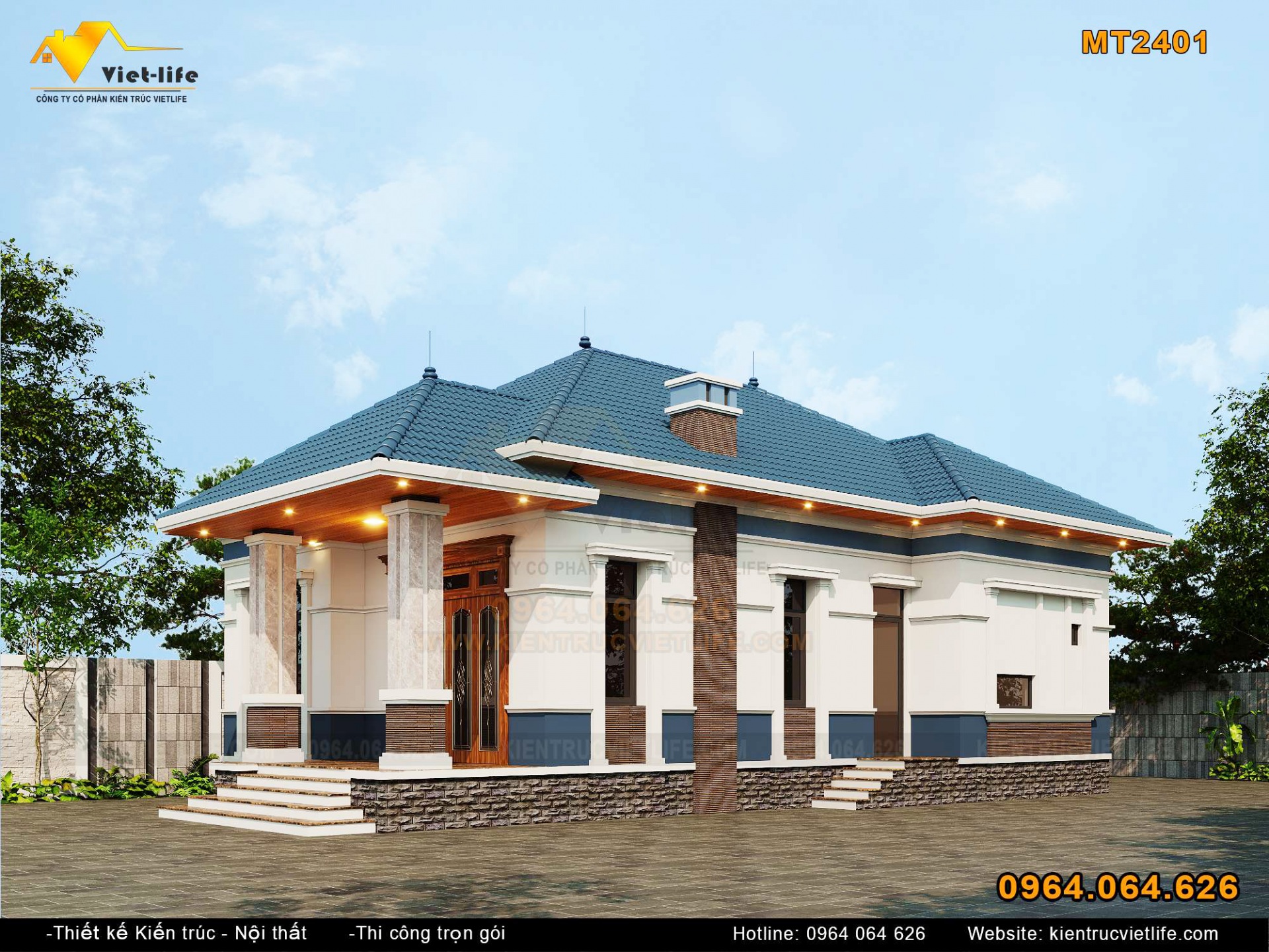 Biệt thự 1 tầng tân cổ điển MT2401 – Giải pháp hoàn hảo cho không gian sống