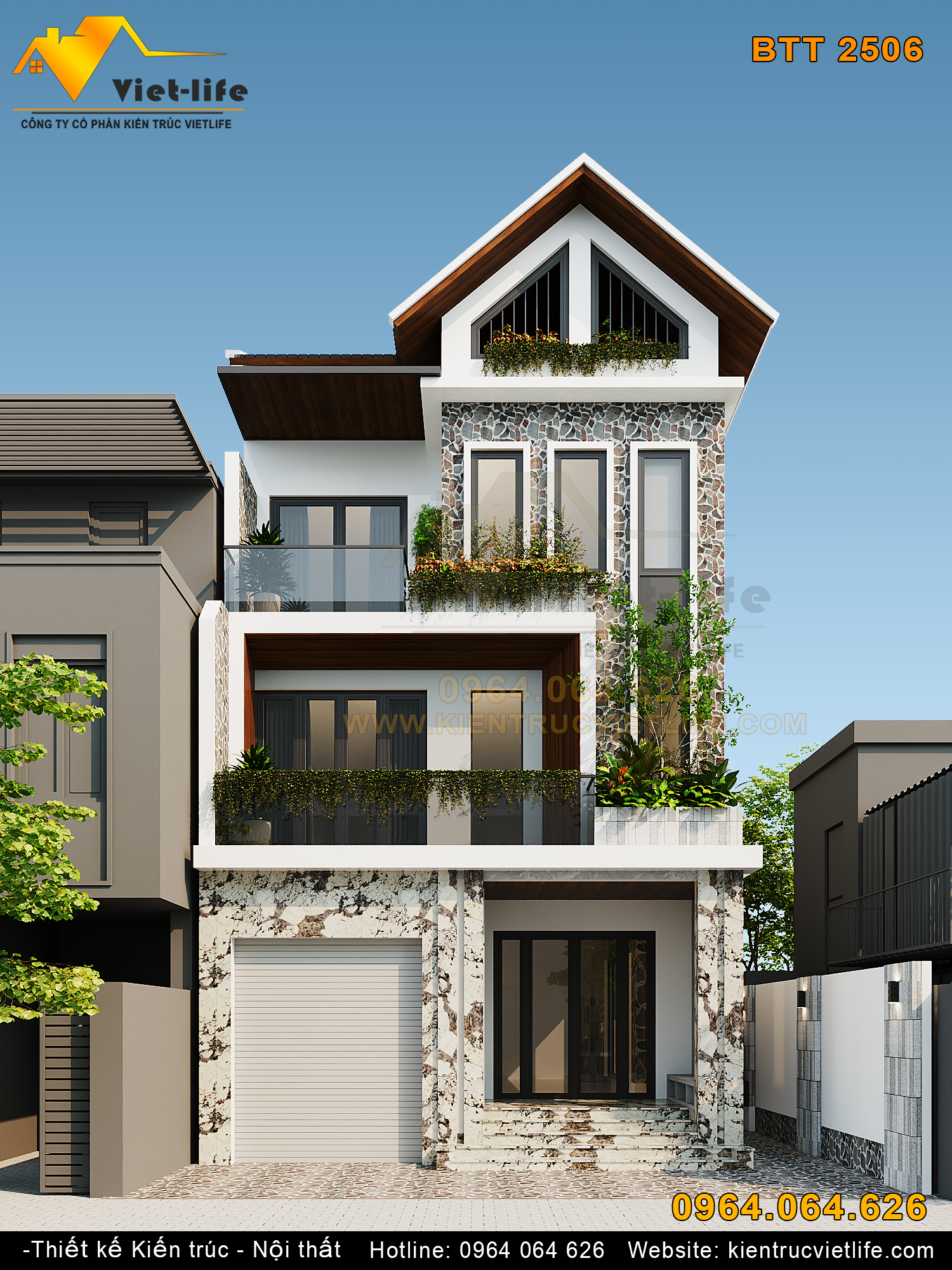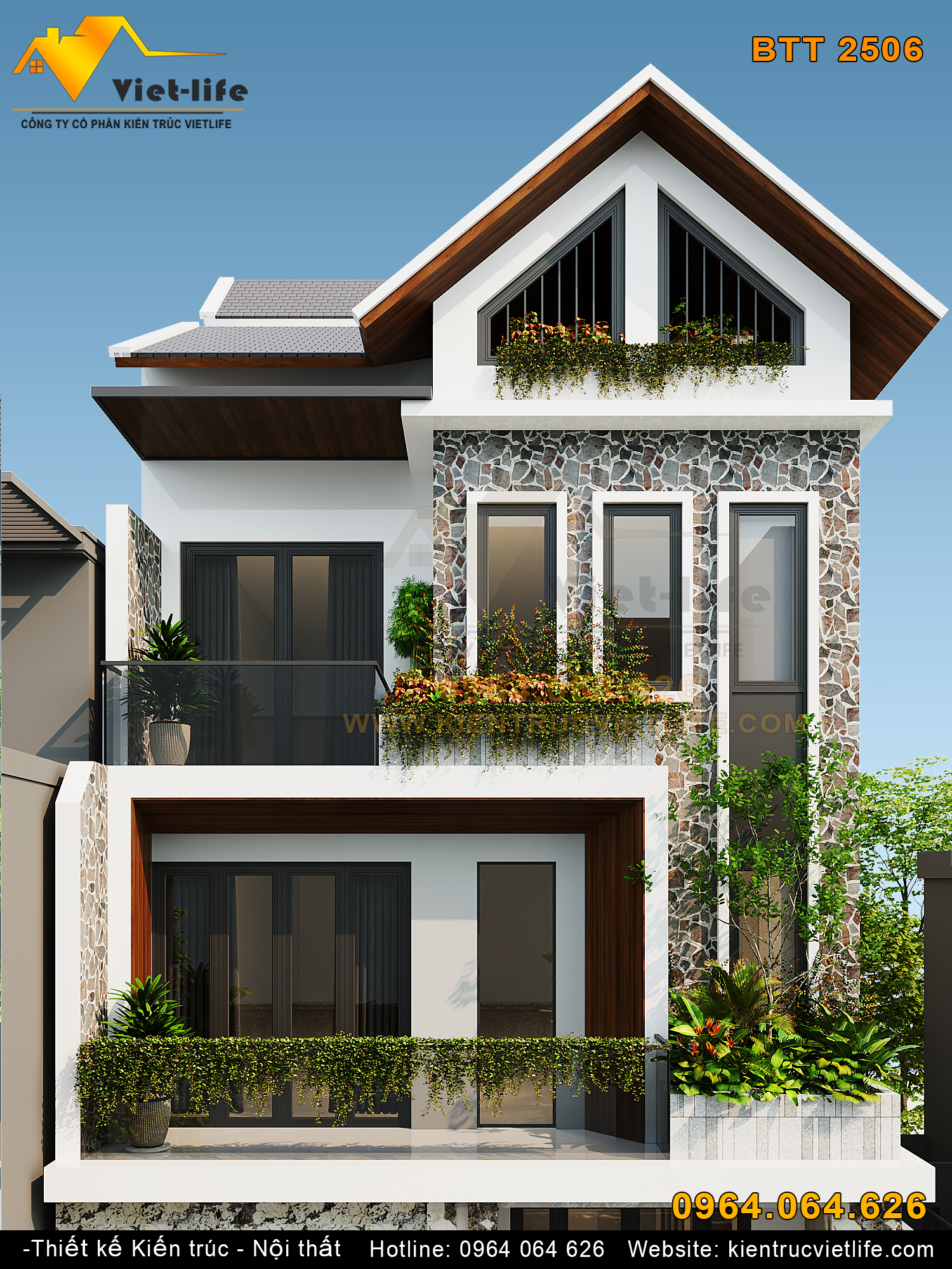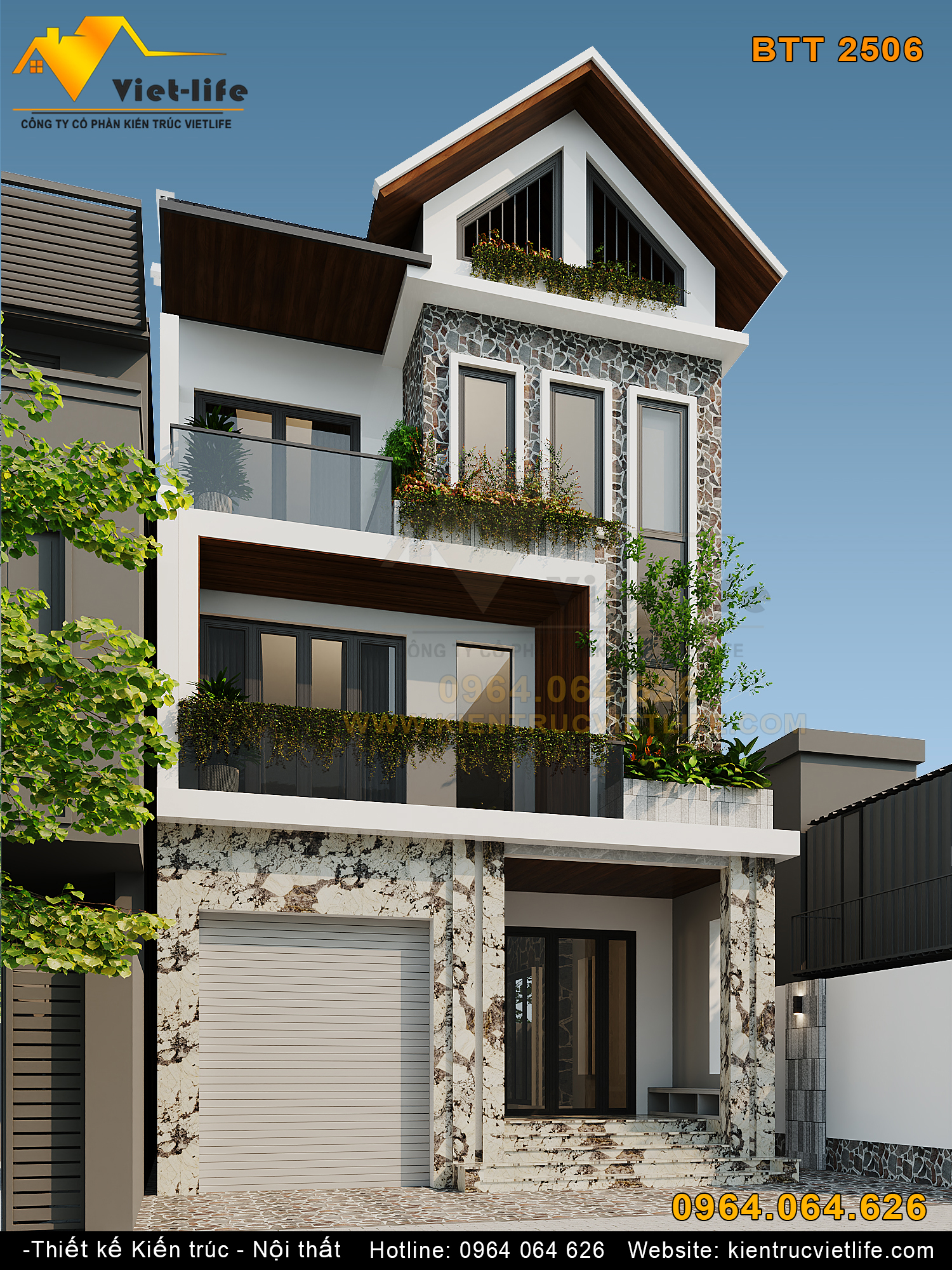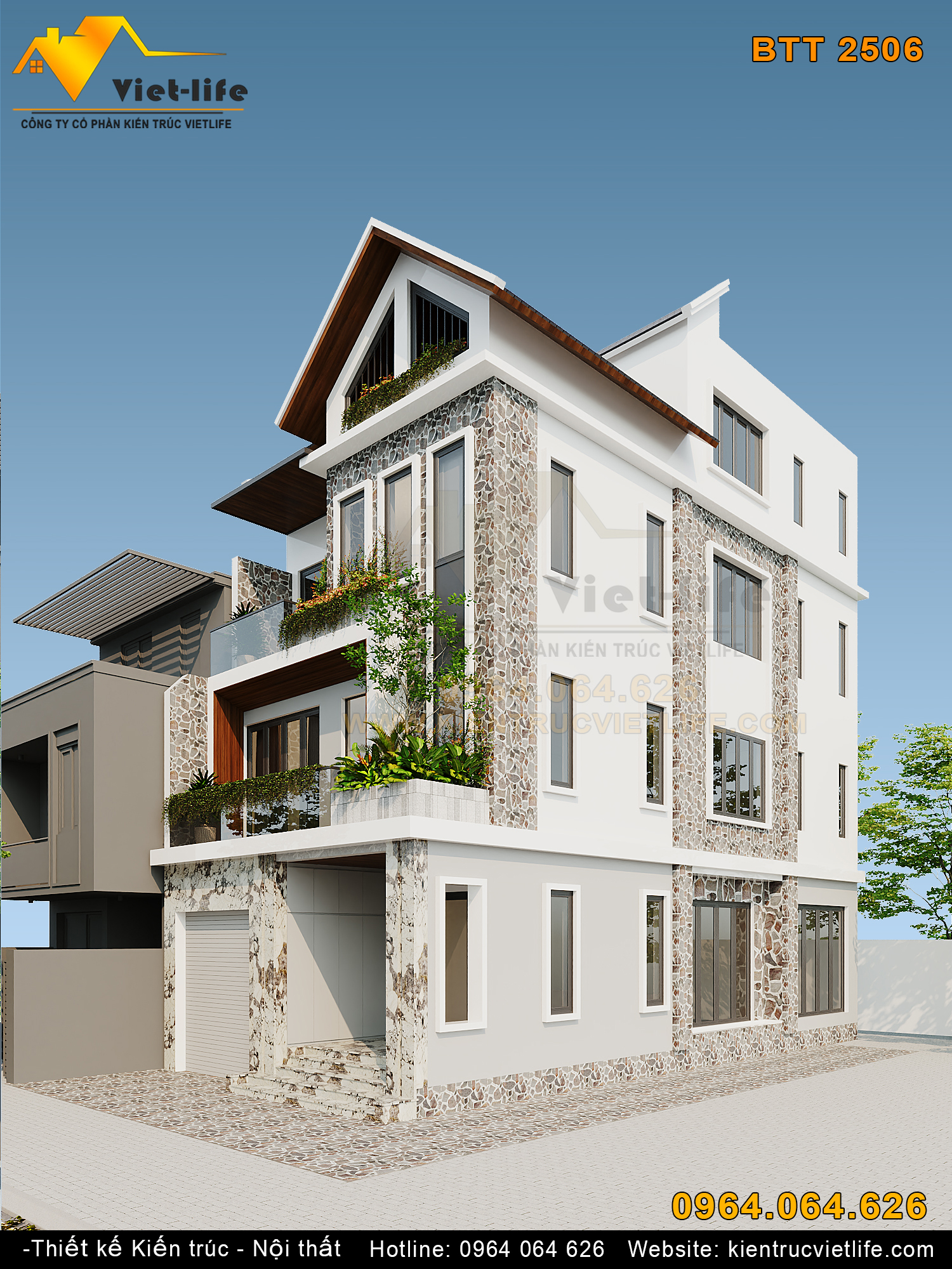 THIẾT KẾ BIỆT THỰ 3 TẦNG HIỆN ĐẠI MẶT TIỀN RỘNG 7.5M BTT2506-2