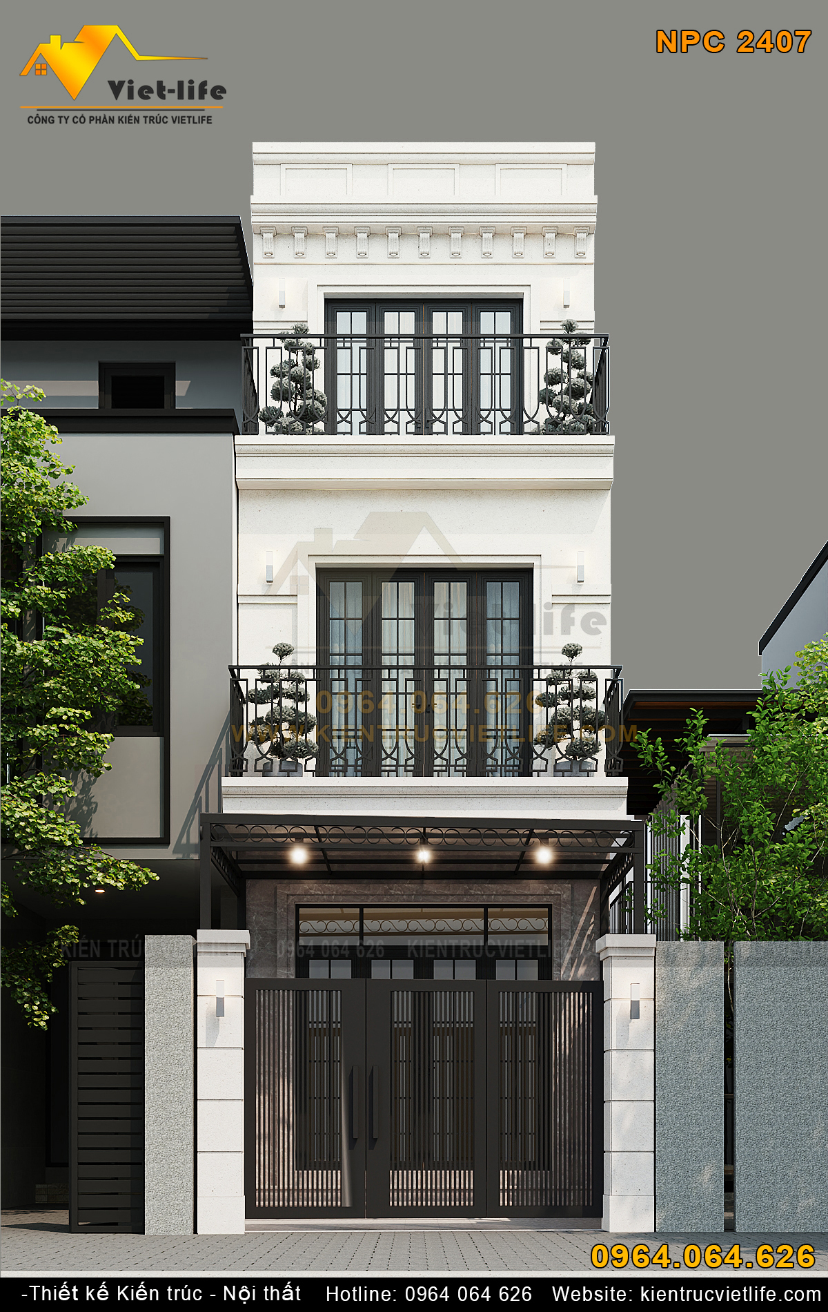 1. Phối canh kiến trúc nhà phố 3 tầng