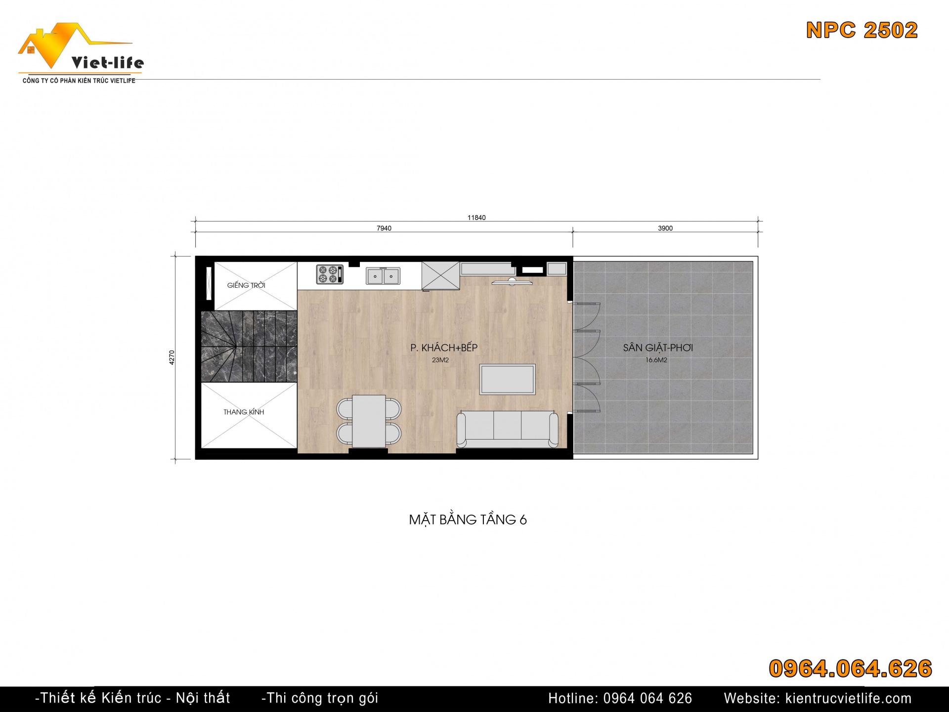 MẪU NHÀ PHỐ 5 TẦNG 1 LỬNG NPC2502