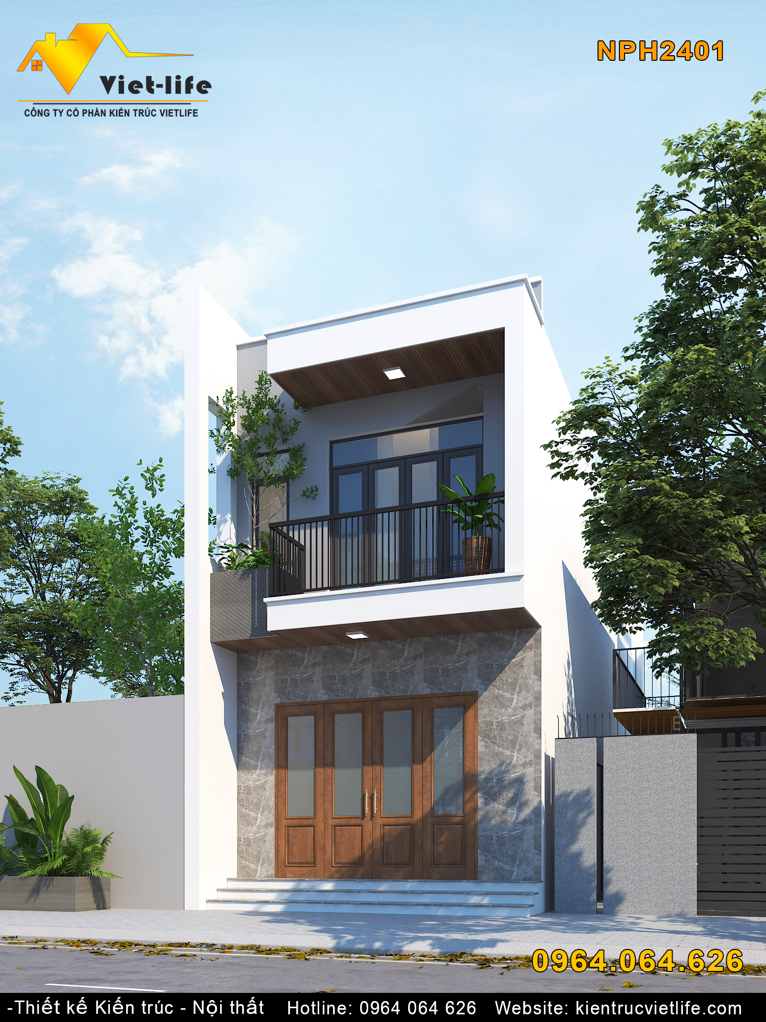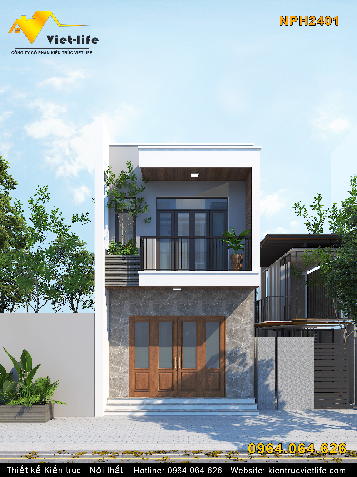 1. Phối cảnh kiến trúc nhà phố 2 tầng rộng 5m