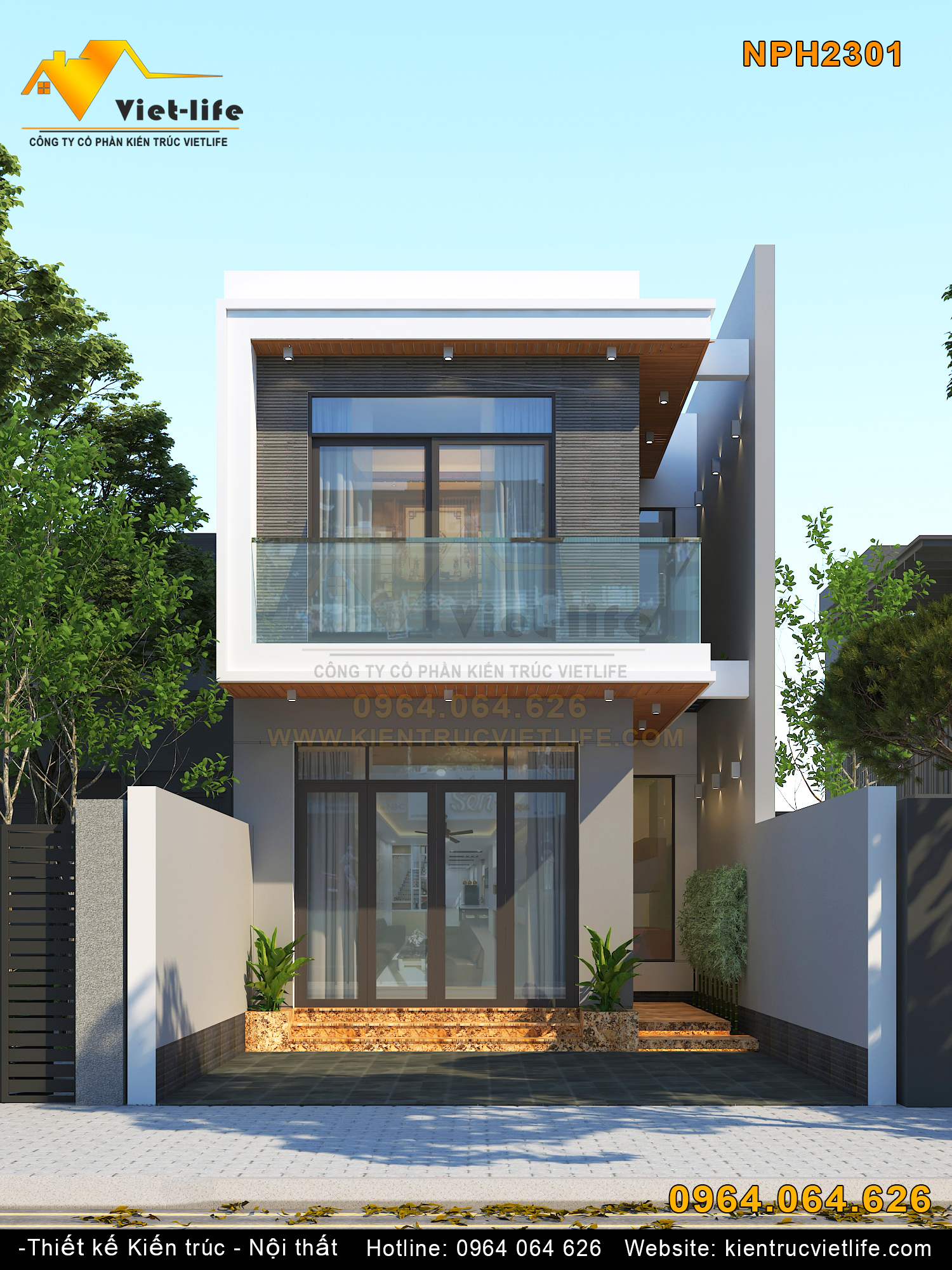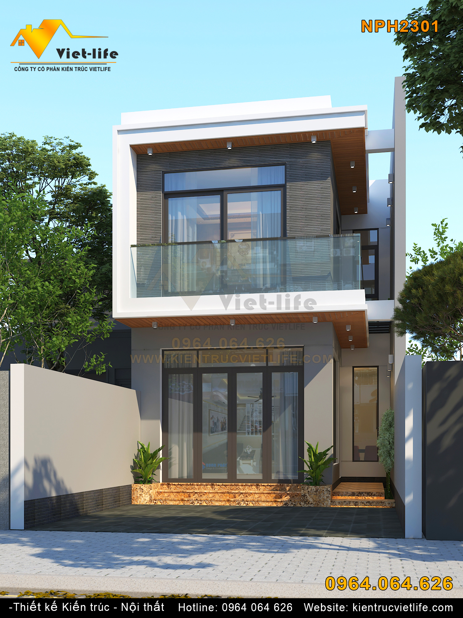 1. Phối cảnh thiết kế Kiến trúc nhà phố 2 tầng rộng 6m