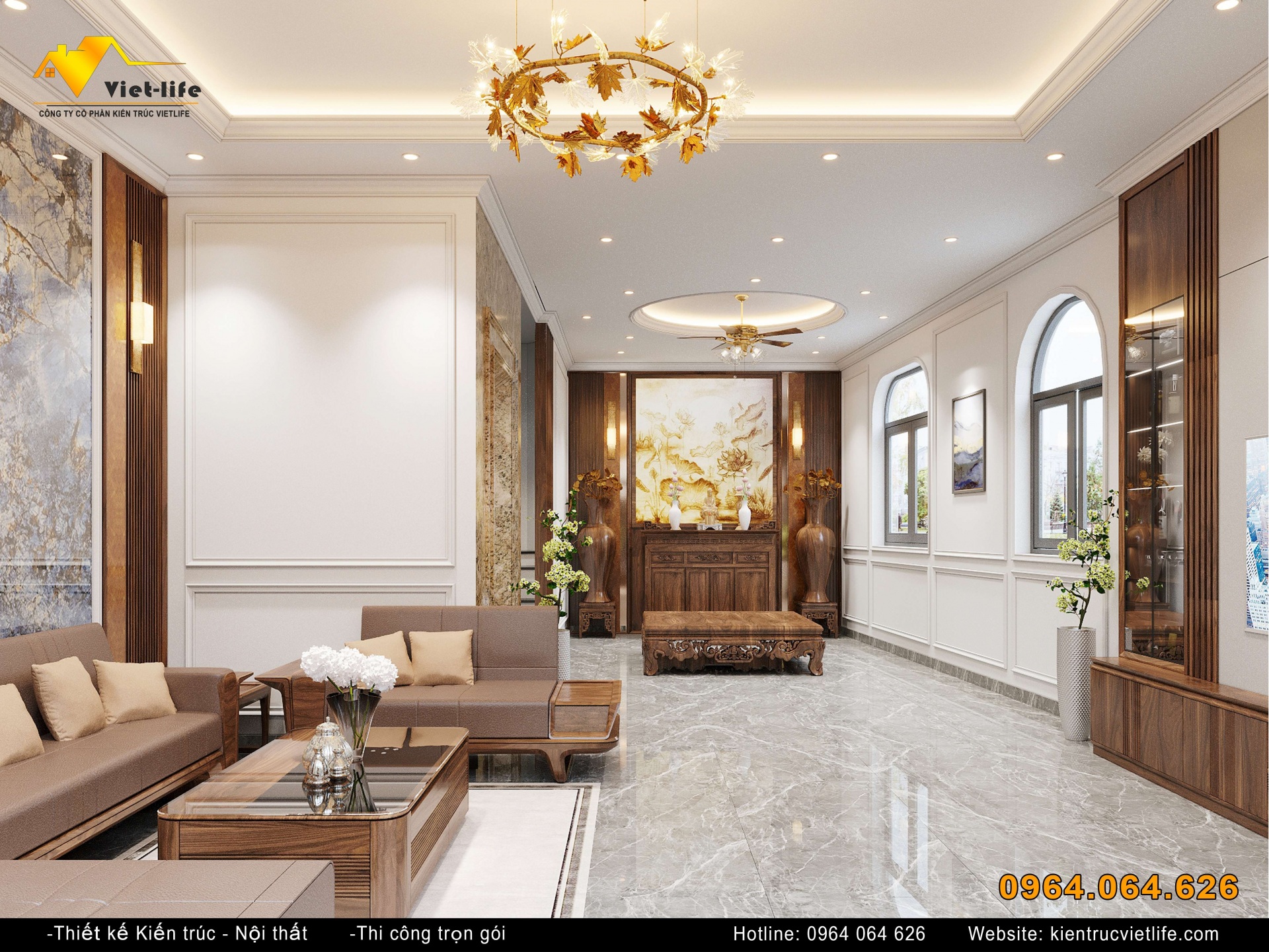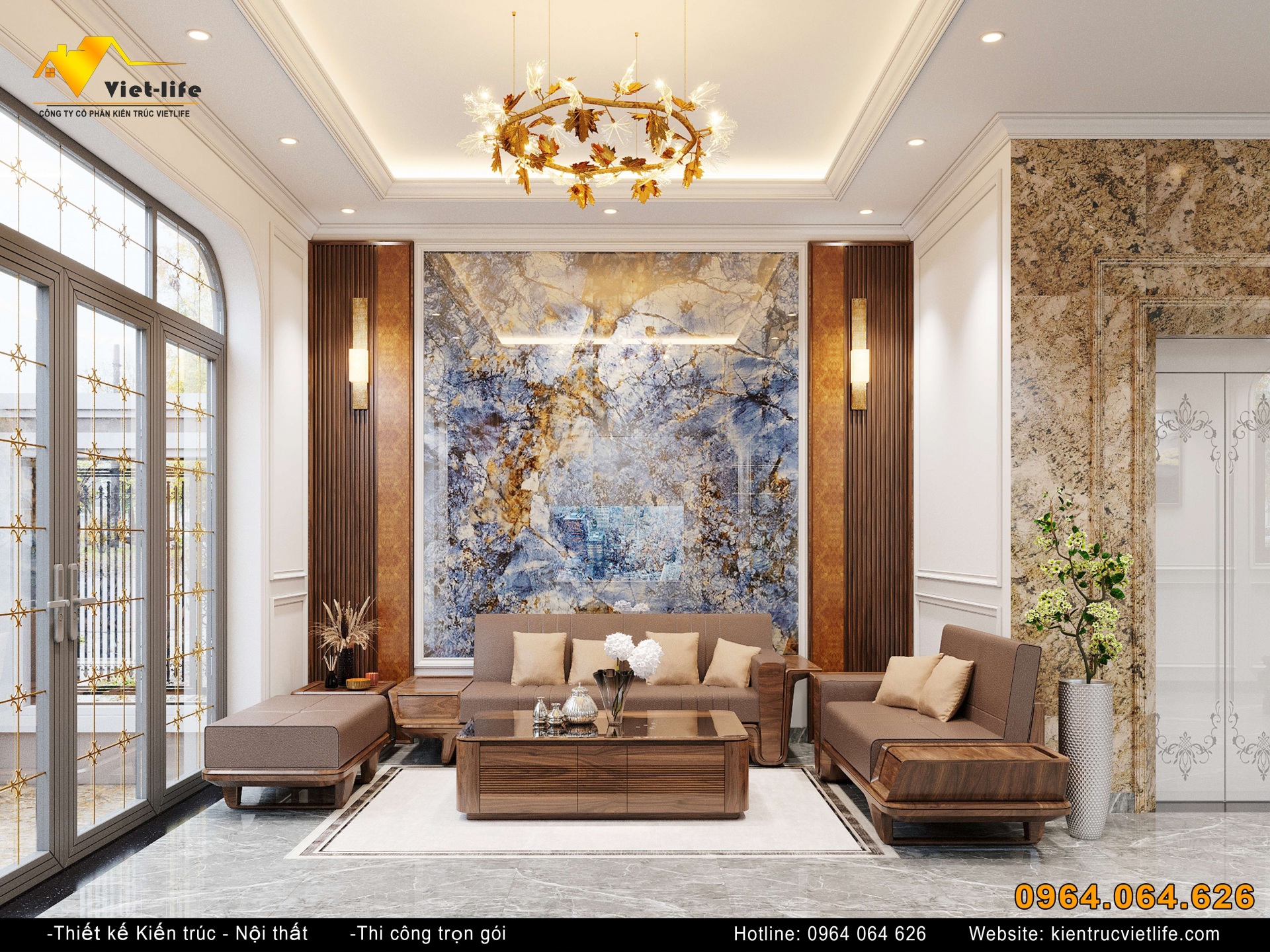 NỘI THẤT PHÒNG KHÁCH HIỆN ĐẠI KẾT HỢP GỖ HƯƠNG NTN2203